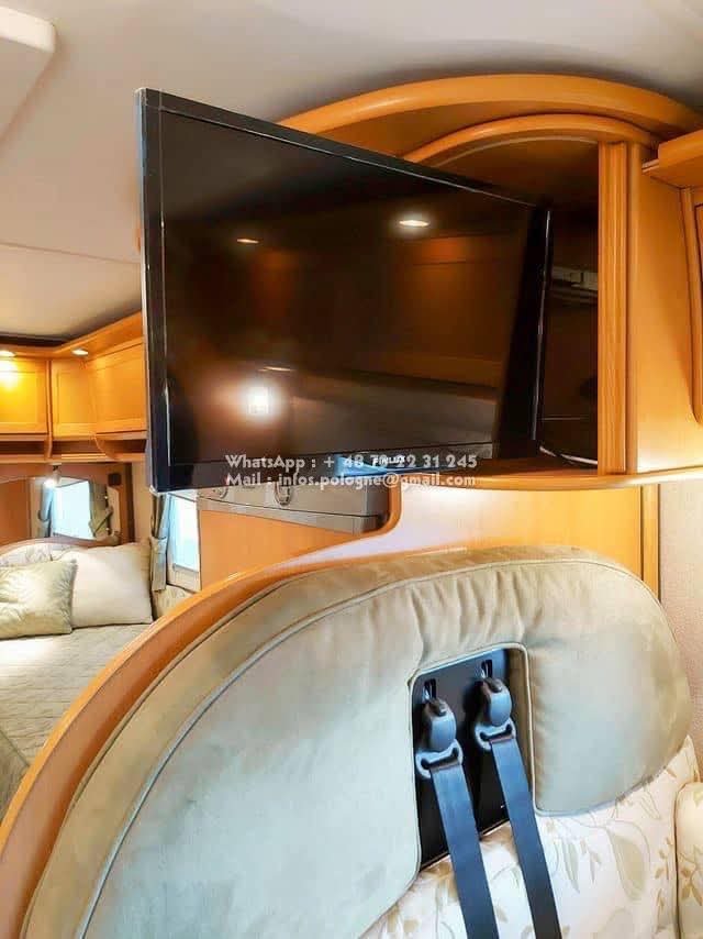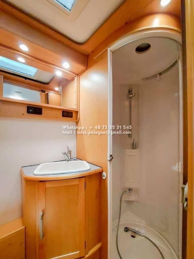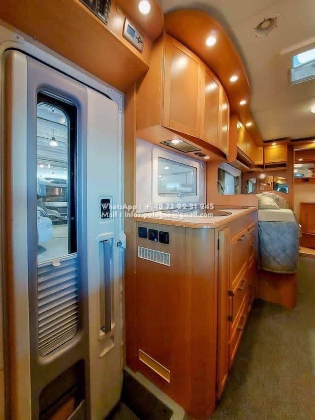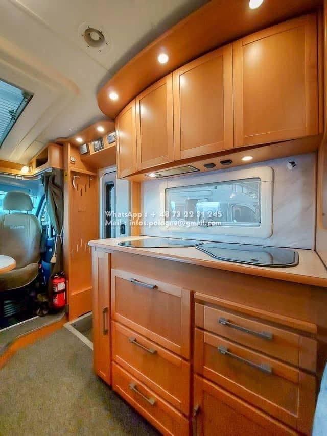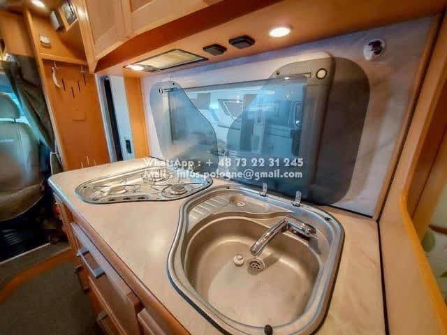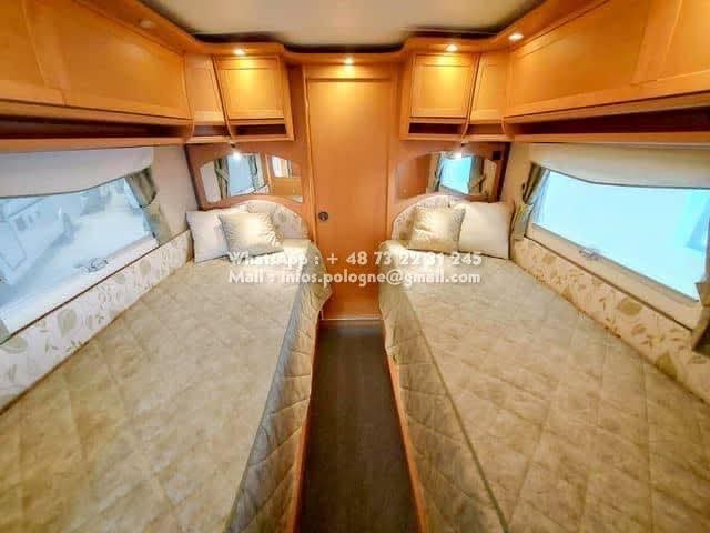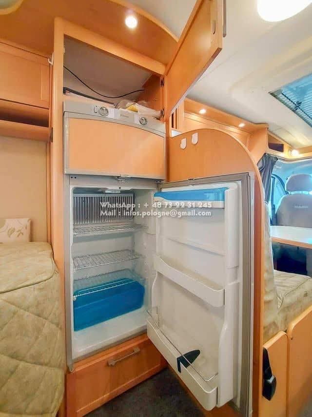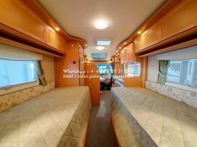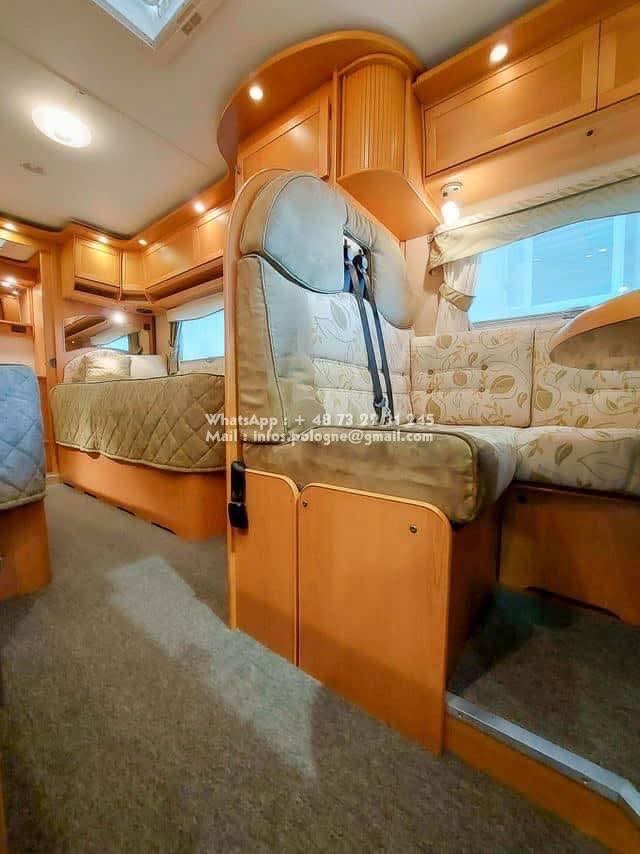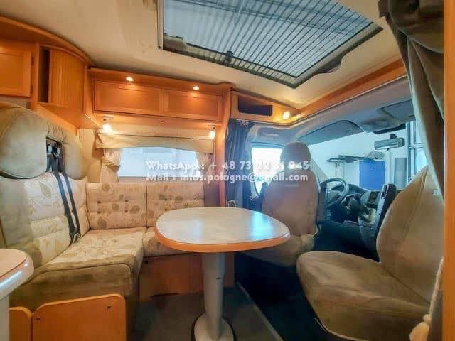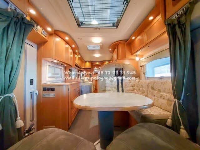 Un classique intemporel bien fonctionnel de Kabe. Travel Master WT avec deux lits simples séparés et une salle de bain le long de la paroi arrière, avec sa propre cabine de douche. Le chauffage central à eau Alde vous garde au chaud tout au long de l’année. La voiture est équipée d’un toit ouvrant Sky Wiew et d’un bon éclairage intérieur. Elle montre des signes d’utilisation prudente et a un faible kilométrage compte tenu de son âge. L’usure de l’intérieur est minime. Cuisine avec hotte aspirante, grand réfrigérateur et congélateur séparé. Attelage de remorque avec une capacité de remorquage de 2000 kg. Il y a un porte-vélos sur la paroi arrière.