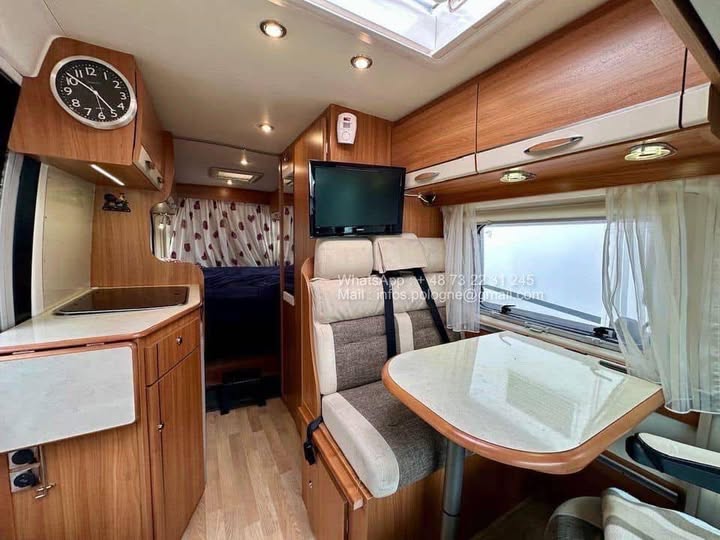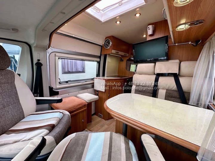 Parfaitement entretenu, il est équipé de nombreux éléments pour le confort et l’autonomie : chauffage central Truma, navigation, télévision, caméra de recul, panneaux solaires et bien plus encore.