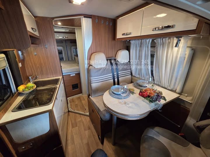 • 🛏 Lit transversal double à l’arrière + dinette transformable → jusqu’à 3 couchages