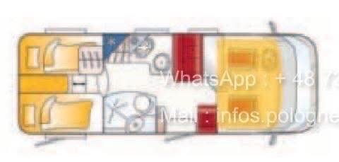 • Aménagement pratique et spacieux : lits jumeaux arrière + lit pavillon avant.