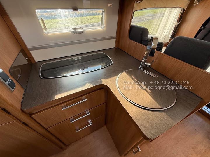Le KABE TM 740 est un camping-car delintegré spacieux et bien équipé, idéal pour les voyages en famille ou entre amis. Sa conception et son aménagement optimisé offrent confort, fonctionnalité et sécurité.