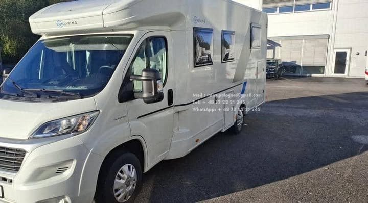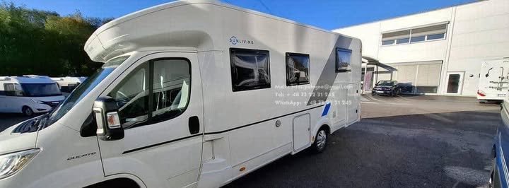 Accueil Accessories Prix : 24000€ , Fiat Ducato Sun Living S75 SL – 2019 – 80 300 km – 131 CH – Automatique – 4 couchages – Lit pavillon