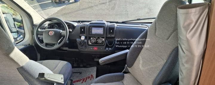 Prix : 28000€ FIAT 2.3 150 CH Benimar Mileo 296 , année : 2016 , kilométrage : 26650 km , 5 places , 5 couchages , permis B , panneaux solaires , test d’étanchéité ok, automatique, diesel