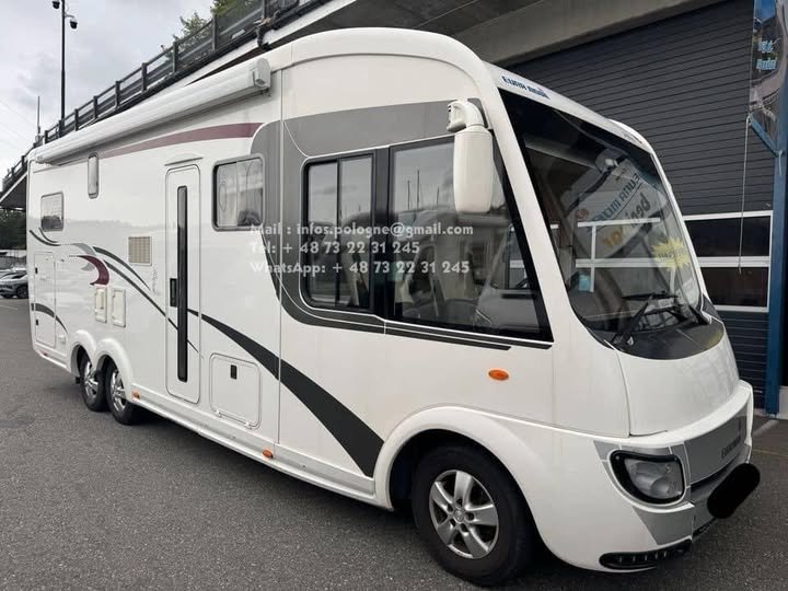 Un camping-car intégré haut de gamme, spacieux et parfaitement équipé pour voyager dans un confort absolu été comme hiver.