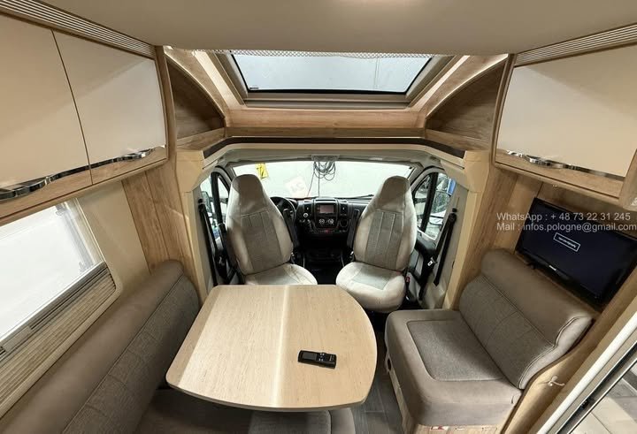 Une bobil complète, élégante et fonctionnelle, idéale pour le couple ou la famille souhaitant voyager toute l’année dans un confort maximal.