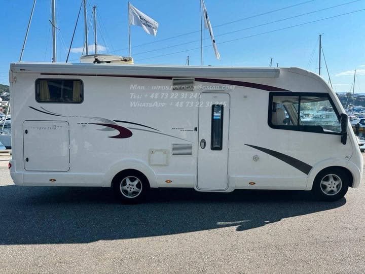 Superbe camping-car intégral haut de gamme, basé sur châssis Fiat Ducato, reconnu pour son confort 4 saisons et sa grande autonomie.