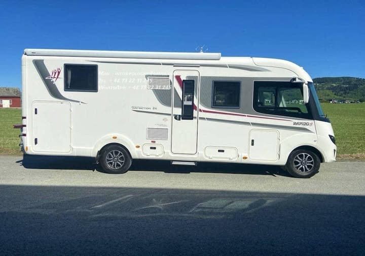 Intégral haut de gamme Rapido I 96 Eksklusiv sur châssis Fiat Ducato, parfaitement équipé pour un confort premium toute l’année.