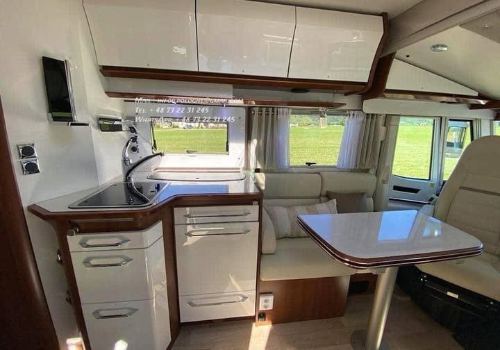 Modèle 2019 avec 59 300 km, doté d’équipements exclusifs : vérins hydrauliques, chauffage Alde et climatisation cellule.