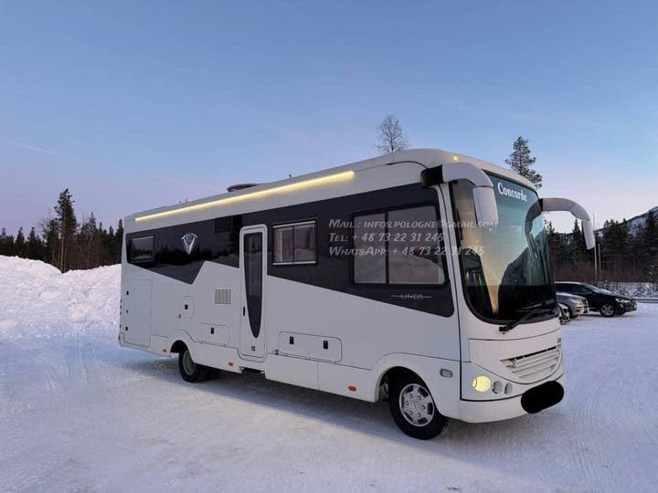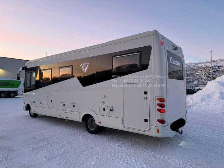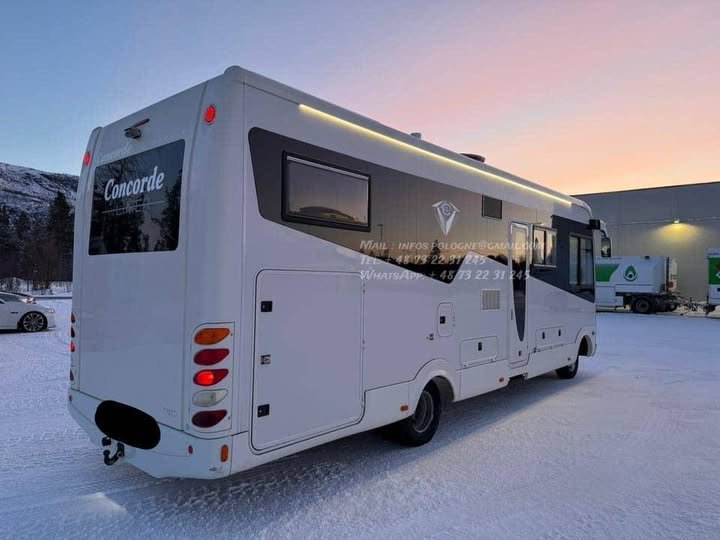 Exceptionnel Concorde D-Liner 840, camping-car intégral de très grand luxe, basé sur IVECO Daily 3.0 diesel 177 CH, propulsion (bakhjulsdrift), boîte automatique, conçu pour le voyage longue distance et l’autonomie maximale.