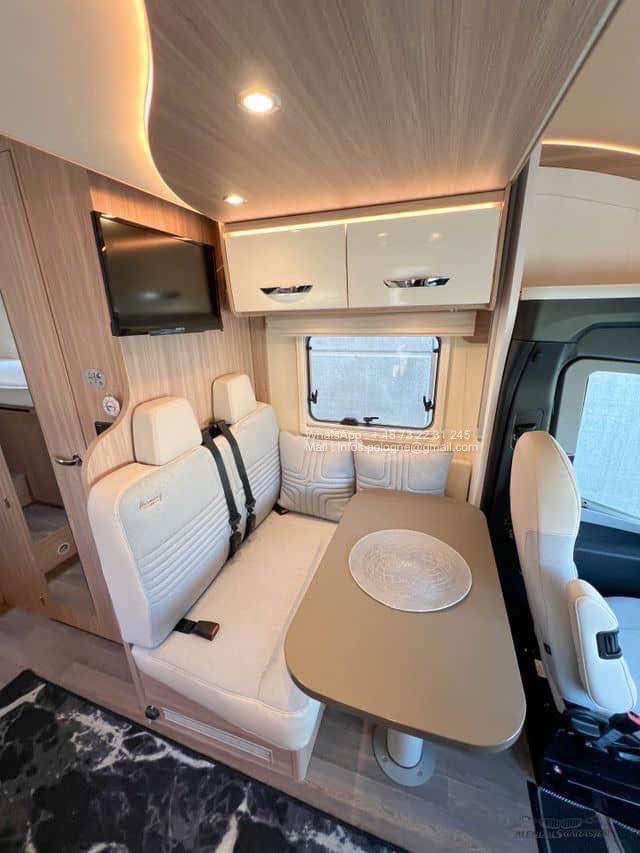 ✨ Une belle intégration du savoir-faire allemand : ce Bürstner Lyseo M T660 est construit sur le châssis Mercedes Sprinter Heavy avec boîte automatique 7G-Tronic et propulsion arrière, gage de stabilité et de confort en toutes saisons. Compact (6,99 m), il reste maniable en ville tout en offrant un aménagement intérieur spacieux et hautement équipé.