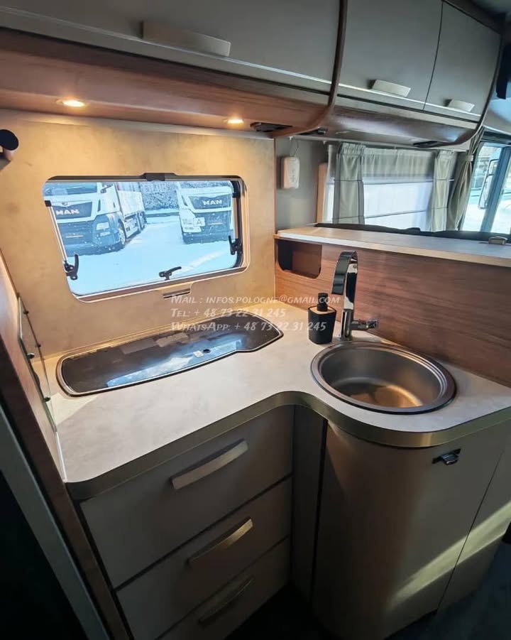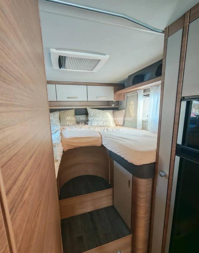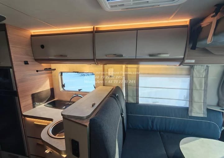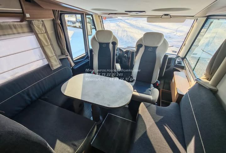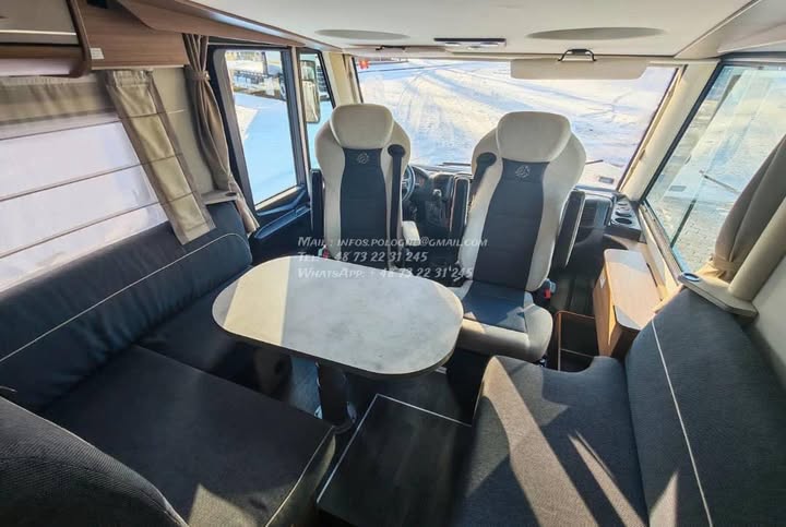 Un modèle haut de gamme, spacieux et parfaitement équilibré, idéal pour les longs voyages en couple ou en famille, avec lits jumeaux confortables, grande soute et excellente tenue de route.