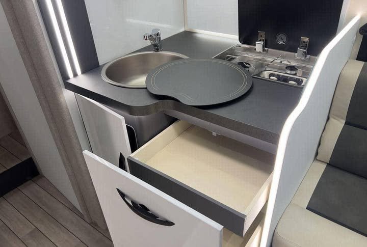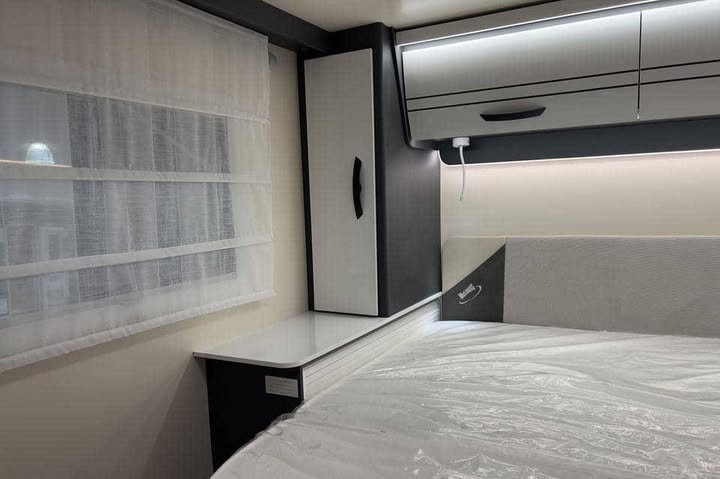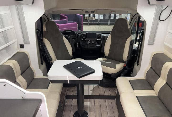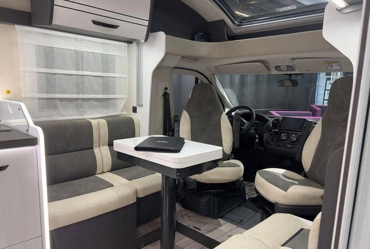 Une superbe bobil semi-intégrée, moderne et luxueuse, prête à vous offrir des voyages inoubliables. Construite sur le fiable Fiat Ducato 2.2 L – 140 ch avec boîte automatique 8 rapports, elle associe confort haut de gamme et innovations techniques.